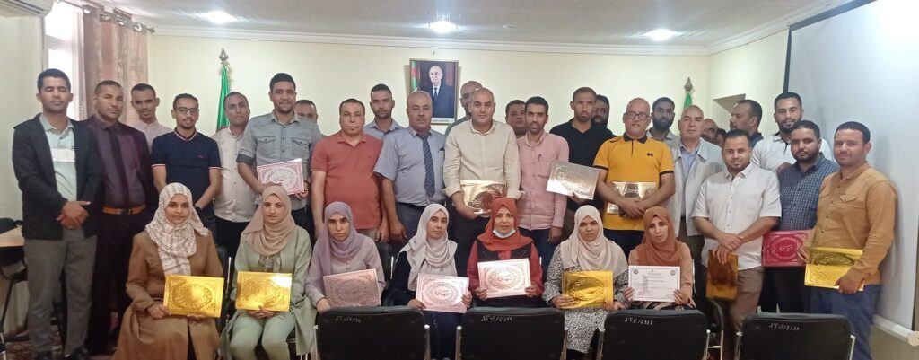 On May 15, 2023, Professor Bachir Menaï, Vice-Rector of the University in charge of Pedagogy, along with Dr. Mohamed Salah Djellab, President of the Local Training Committee, and Dr. Nacer Dehda., Vice-Dean of the Faculty of Arts and Languages in charge of Studies, presided over the ceremony to award certificates of training to the 2021-2022 batch of professors who had completed a full year of training, both in person at the university and remotely from the University of Constantine.