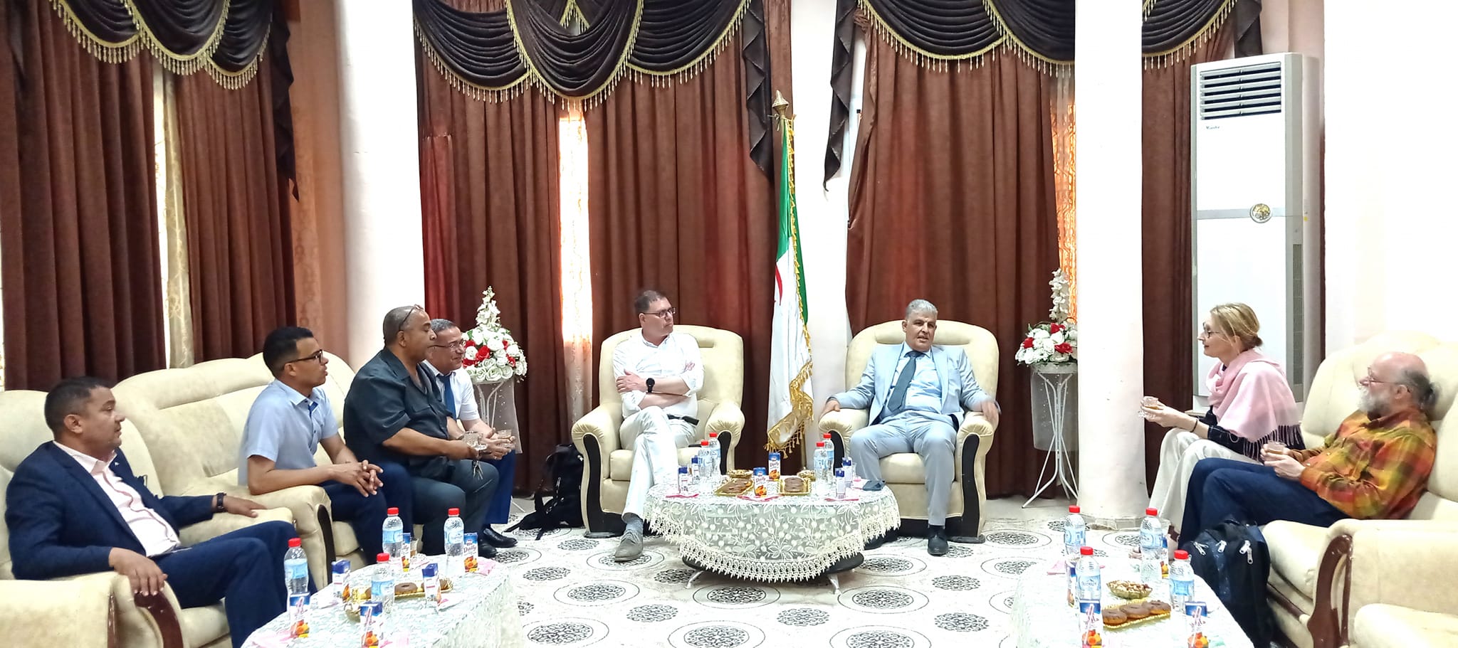 On Sunday, May 8, 2023, the Director of the University of El Oued, Professor Omar Far.hati, the Vice-Rector for External Relations, Professor Guedda, El habib, the Secretary General of the University, Mr. Chawki Medellel, the Head of the Department of Agricultural Sciences, Dr. Ismail Mahda, and the Head of the Laboratory of Biodiversity and Biotechnology Applications in the Agricultural Field, Dr. Nili Mohamed Seghir, received the second delegation of research professors from the University of Life Sciences in Poznań, Poland, at the central university. The Polish delegation was headed by Professor Ryszard Kowalski, an expert and researcher in food technology, Professor Marcin Tadeusz Górecki, a researcher in the field of animal sciences, and Professor Aleksandra Łangowska, a researcher in the field of entomology.