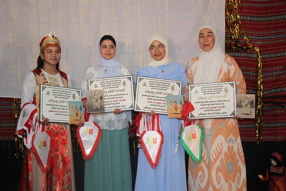 Under the supervision of the Residence Director, Mr. Beiji Abdel Rahman and with attendence of the University Services Representative, Mr. Mouldi Chouchani, the University representative, Mr. Dehda Nacer, and the Director of Soufia Bachir Residence, Mr. Seif El Islam Mennai and the residence staff and workers, the ceremony featured Uzbek performances and traditional dishes. The Uzbek femal students were honored by the attendees and the supervisors of the prayer hall and the ceremony was admired by the female students of the residence.