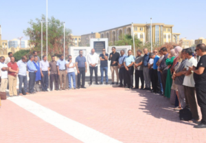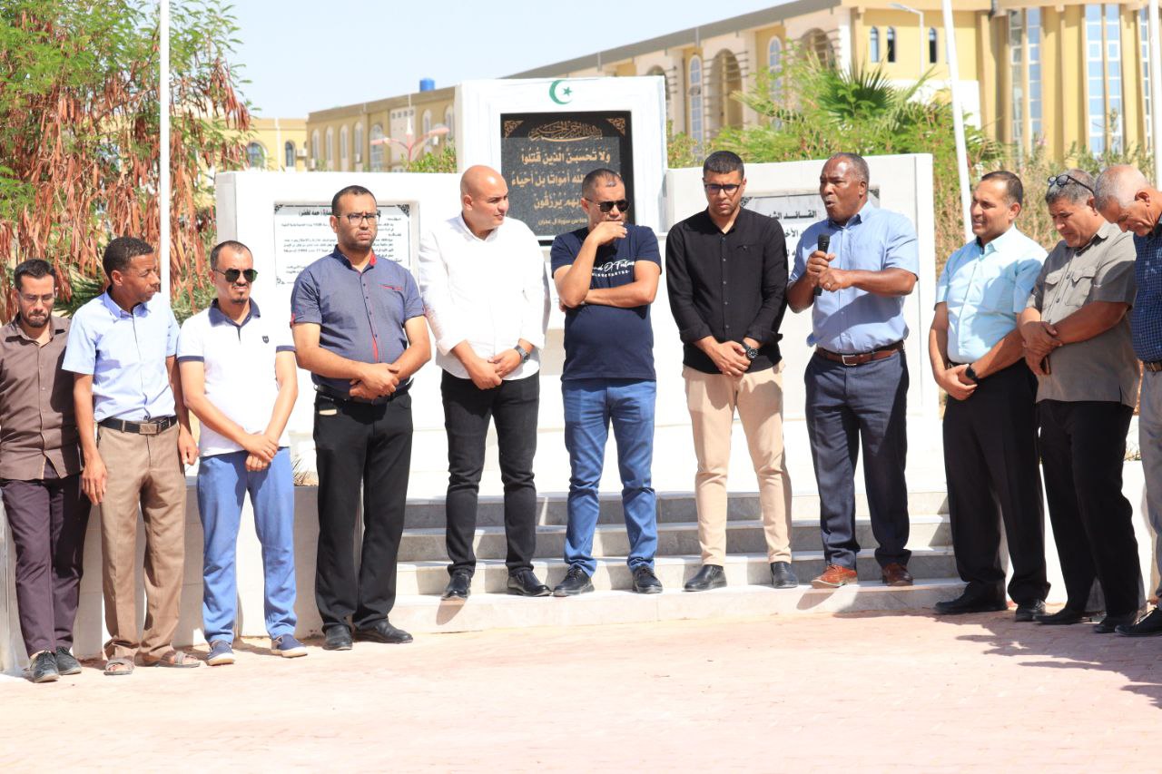 The commemorative event, which was organized in front of the memorial at the University of El Oued at 11:00 am, was led by the Vice-Rector of the University, Professor Boubaker Mansour, and was attended by the Deans of Faculties, Secretaries-General of Faculties, professors, student organizations, staff, and the University’s Media and Communication Cell.