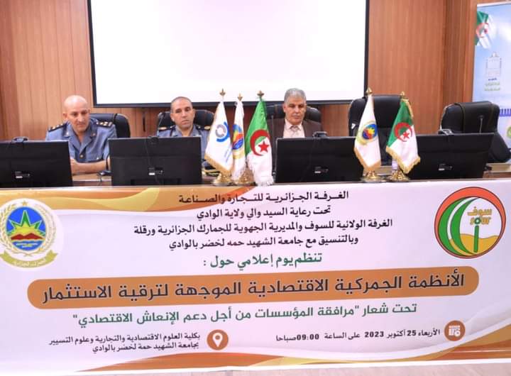 On October 25, 2023, the University of El Oued conducted a seminar on economic customs systems with the aim of encouraging investment. This event was arranged in collaboration with the State’s Chamber of Commerce and Industry of Souf and the Regional Directorate of Customs Ouargla. The launch was overseen by representatives from the customs sector, Chamber of Commerce, and Faculty of Economic Sciences. Professor Omar Ferhati, Rector at the University, emphasized the significance of this event as it translates theoretical knowledge into practical application for students to enhance their understanding regarding customs and economics.