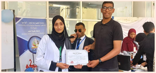 • Students with Disabilities: In the current reporting year, the University provided support to a total of 60 students with documented disabilities, indicating a commitment to ensuring equitable access to higher education. The university endorses the representation and visibility of students with special needs, especially within student dormitories and organizations. The Lodging—Directorate of University Services, El Oued State sponsors the activities of the group nationally. The Basmat Amal club (Imprint of Hope) offers skill development through the organization of workshops and boosts member participation in essential fields such as biology and medicine.