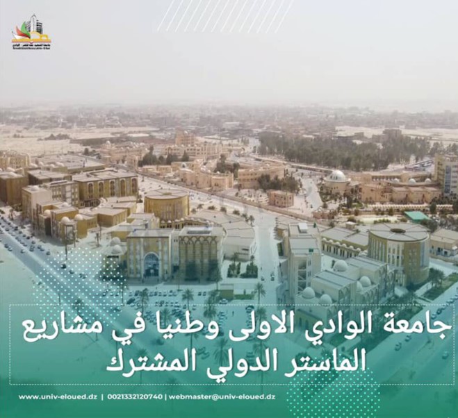 National Leadership in Joint International Master’s Programs: Under the decision of the Minister of Higher Education, the University of El Oued ranked first nationally to ensure training for a Joint International Master’s degree for the 2024/2025 academic year. This program is established through a twinning agreement signed with the Universities of Gafsa and Gabès (Tunisia) in May 2023, focusing on the fields of Technology, Mathematics, and Computer Science.