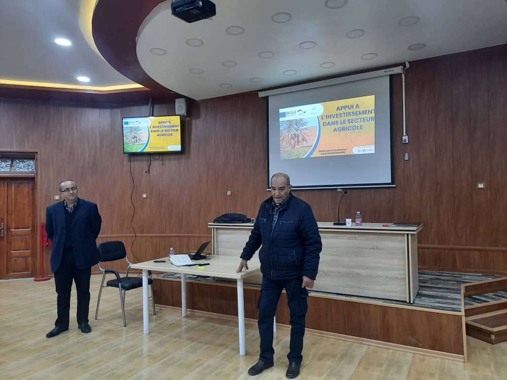 On Wednesday, December 28, 2022, at 8:30 AM, a training course organized in collaboration with the Ministry of Agriculture and Rural Development (MADR) began at the Tadjani Hotel. The German Agency for International Cooperation (GIZ) is responsible for implementing the “Program to Support the Agricultural Sector, including Water Management, Agro-Industries and Agricultural Pollution (PASA)” in partnership with the National Institute of Agronomic Research of Algeria (INRAA) for the “Dates” and “Chili Peppers” sectors in Biskra Province and the “Potatoes” sector in El Oued Province.