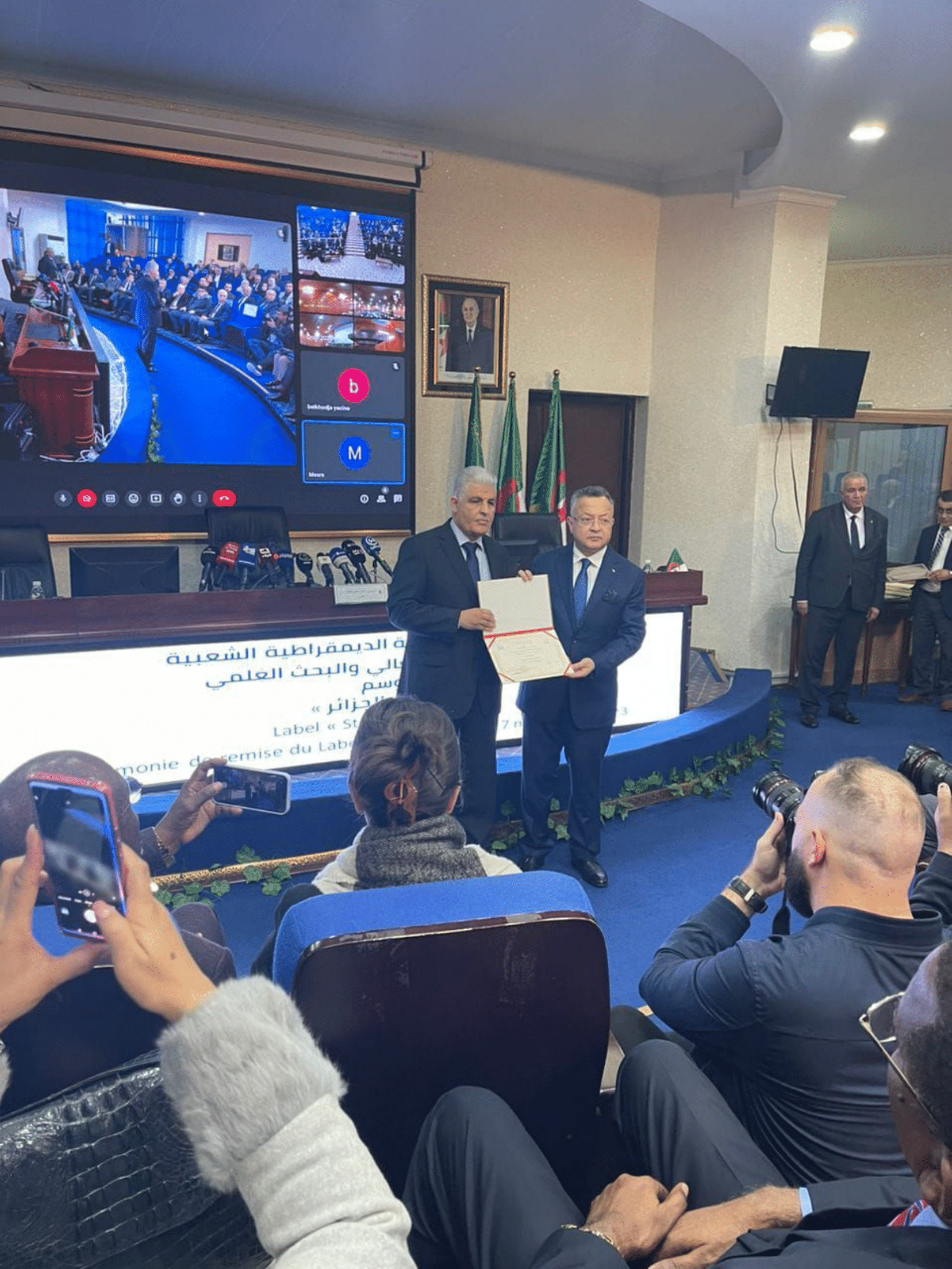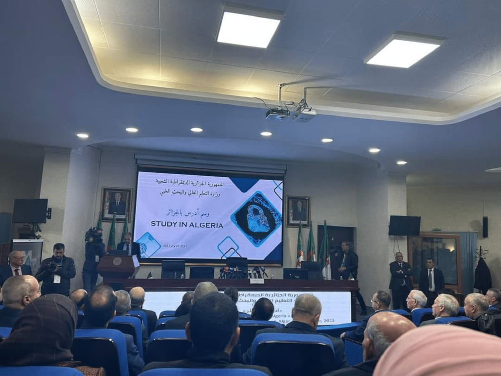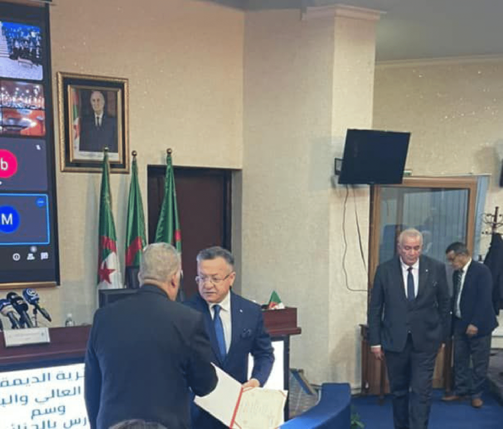 On November 27, 2023, Professor Kamal Bedari, Minister of Higher Education and Scientific Research, oversaw the presentation of the “Study in Algeria” one-star accreditation to fifteen universities and university residences. The ceremony was attended by officials from the Ministry of Foreign Affairs, representatives from the national community abroad, as well as thirty attachés from diplomatic missions in Algeria. Professor Omar Ferhati, Rector of the University of El Oued was honoured to receive the inaugural “Study in Algeria” label from Professor Kamal Bedari for demonstrating academic excellence and providing comprehensive scientific facilities and accommodation services following a thorough evaluation process conducted by a national committee mandated to assess compliance with standards set by the Ministry of Higher Education and Scientific Research aimed at enhancing international student enrollment and promoting studying opportunities in Algeria.