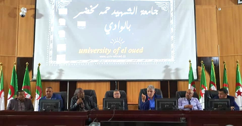On April 10, 2023, Professor Omar Ferhati, the Rector of the University of EL Oued, chaired a meeting to assess and review the progress of both the first and second semesters during the 2023/2022 academic year. The meeting took place in Abu Al-Qasim Saad Allah Grand Lecture Hall and was attended by faculty deans, vice-deans, the university secretary-general, and department heads.