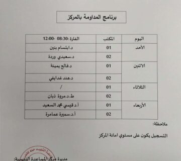 University of El Oued: Psychological Assistance CentreChaima MennaiNovember 26, 2024The Psychological Assistance Centre at the University of El Oued is a cornerstone of student support, embodying the university’s mission ... اقرأ أكثر