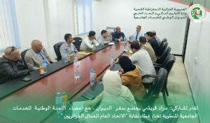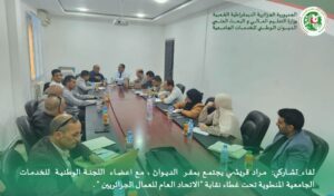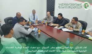 As part of the opening of the dialogue and consultation with the social partners, Mr. Mourad Kouraichi met with members of the National Committee for University Services under the cover of the “General Union of Algerian Workers” Union.