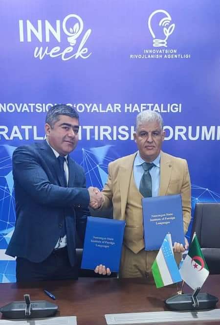 At the invitation of the Director of Tashkent University of World Languages, Professor Omar Ferhati, Rector of the University of El Oued – and his accompanying delegation participated in the International Innovation Forum organized by the Ministry of Higher Education, Science and Innovation of Uzbekistan, with the participation of many international bodies, including South Korea, India, the Emirates, Estonia, Hungary, etc.