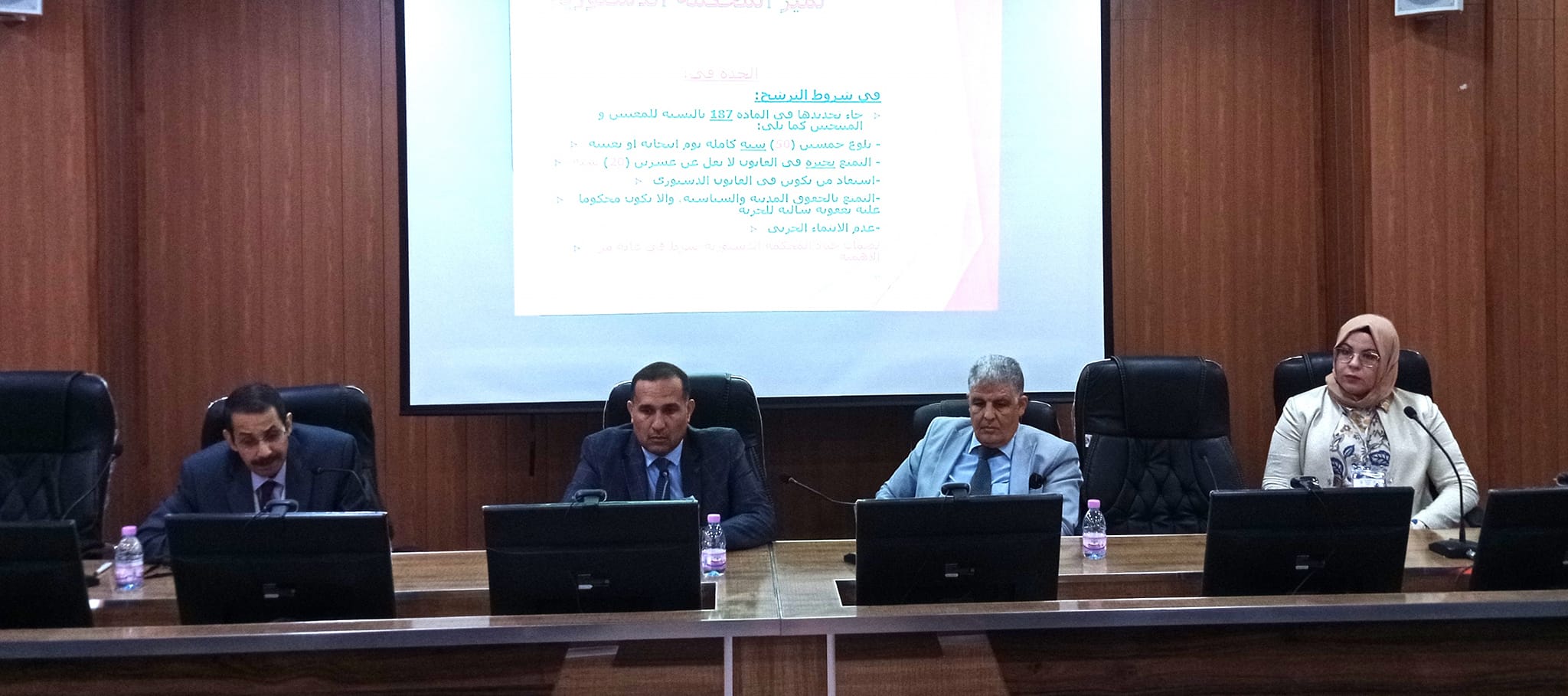 The rector of the Conference, the Dean of the Faculty, and the rector of the University took turns at the podium to deliver welcoming remarks to the guests and to introduce the conference, its problems, and its importance. Professor Amar Boudiaf then gave an opening lecture on the distinction of the Constitutional Court according to the 2020 constitutional amendment. This was followed by two scientific sessions on the first day, and the work of the scientific and training workshops will resume on the following day.