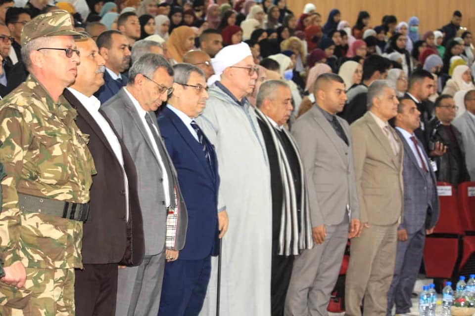 The scientific event of the Conference was attended by Mr. El Khadim Saeed Akrouf, the Wali (City Governor) of El Oued, Professor Omar Ferhati, the University Rector, Professor Muhammad El-Eid Tadjani, the Sheikh of the Zaouia Tedjania, the President of the Economic, Social, and Environmental Assembly, Professor Boumedien Bouzid, the Secretary-General of the Higher Islamic Assembly, as well as the Deputy President of the Higher Assembly for Youth and the President of Security Committee, the Chief of Administrative Service of El Oued, Sufism Sheikhs, and media representatives.