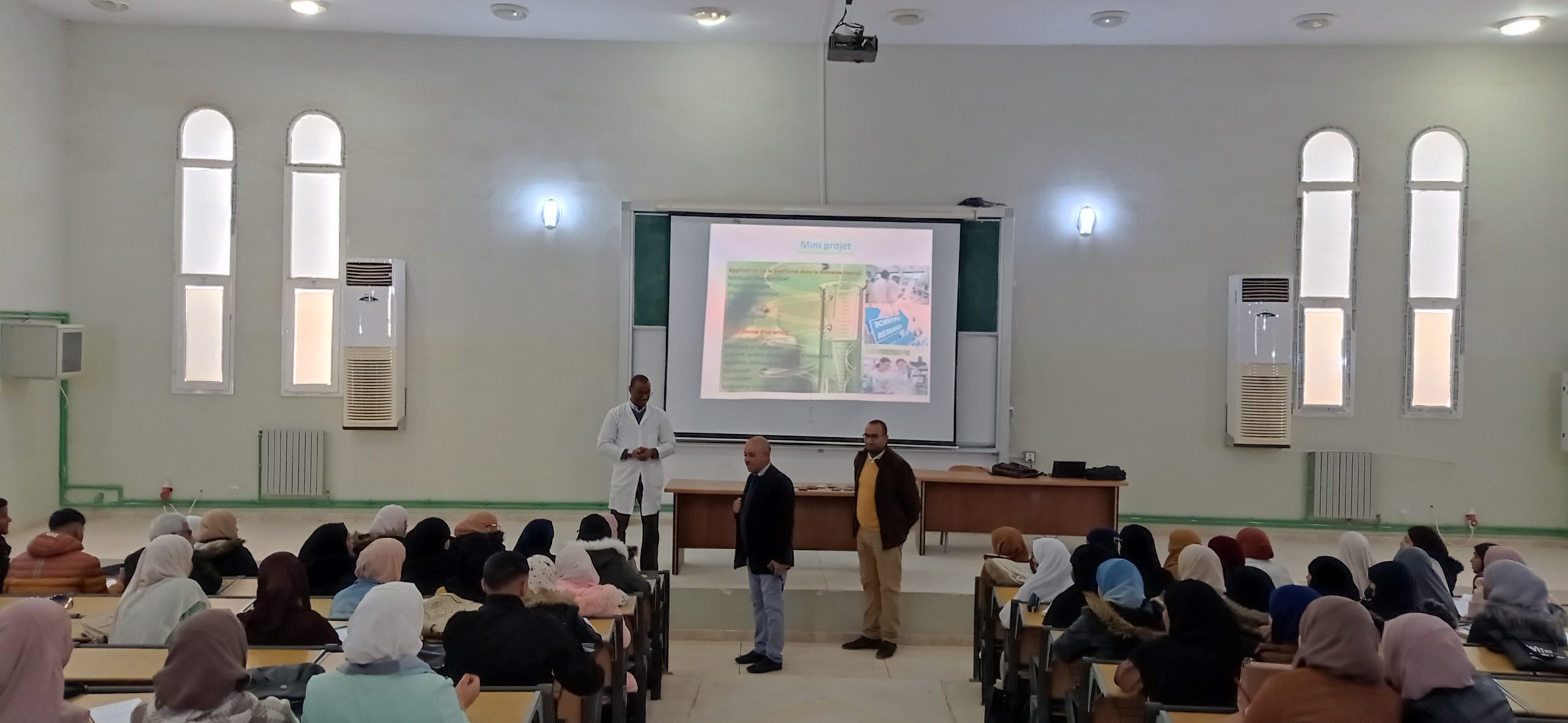 Today, January 29, 2023, the face-to-face classes for the second semester of the academic year 2023/2022 started at the University of El Oued. The classes include directed and applied work under very favorable conditions, supervised by the Vice-Rector of the University in charge of pedagogy, along with the deans of the faculties, administrative staff, and teaching staff. Additionally, the horizontal courses also started yesterday, Saturday, after the distribution of study schedules to students and professors following the announcement of students’ grades and the conduct of makeup exams.