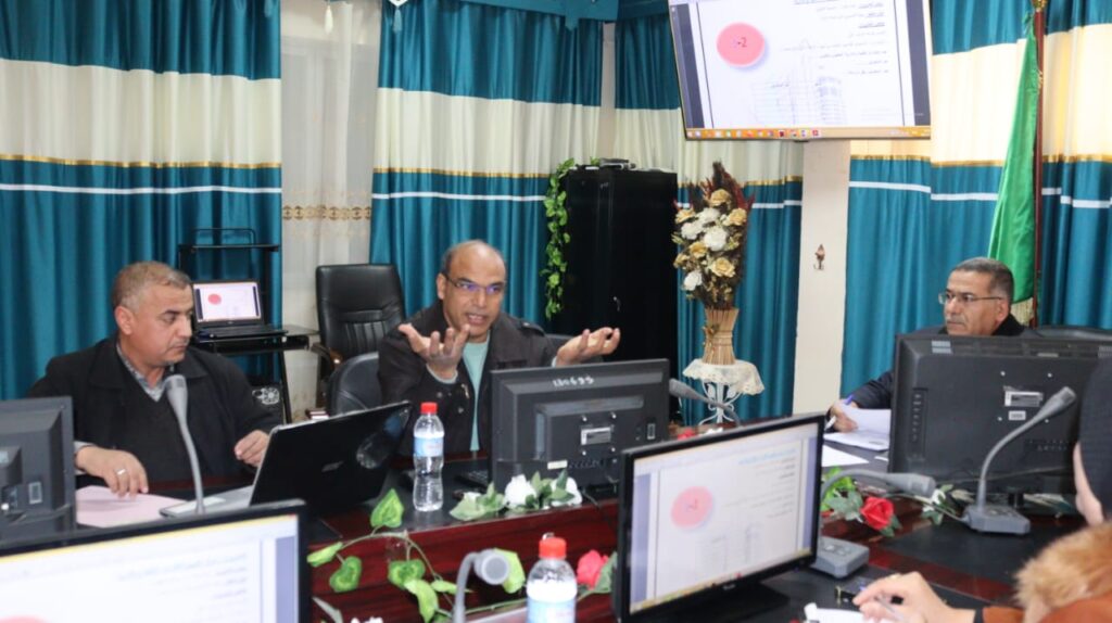 The Strategic Digitization Committee at the University of El Oued is chaired by Professor El-Habib Gedda, who presided over the meeting with the assistance of engineers Samir Guedri and Dr. Saâdi Medelagh.