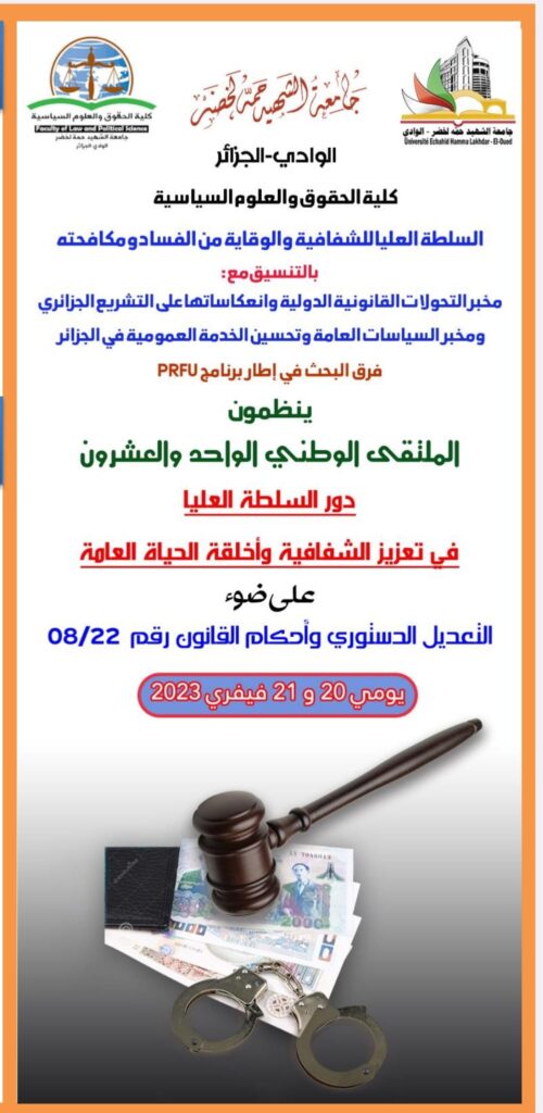 The University of El Oued and the High Authority for Transparency, Prevention and Fight against Corruption Organize a National Conference on February 20-21