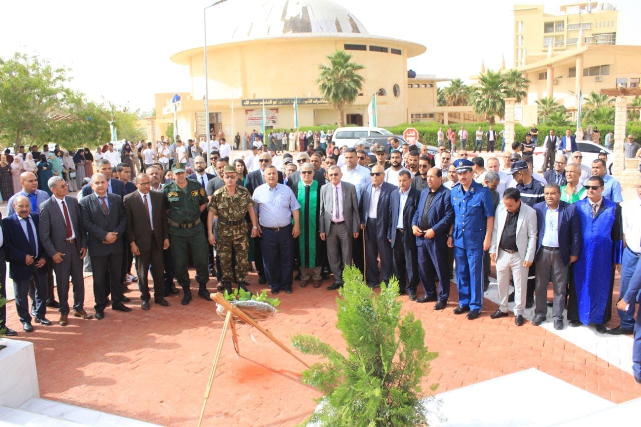 In a special distinction for the university this year and in commemoration of the memory, the University of El Oued built a memorial to the martyr leader Hamou Ladjder, where the Wali of the wilaya and the director of the university, accompanied by the revolutionary family, local and security authorities, and university students, laid a wreath of flowers on the memorial and read the Fatiha for the souls of the martyrs. The Wali and the accompanying delegation then toured the various and valuable exhibitions in their different research and technological aspects, which reflect the distinction of the University of Martyr Hamou Ladjder – El Oued – and its achievement of the first place nationally in the patent.