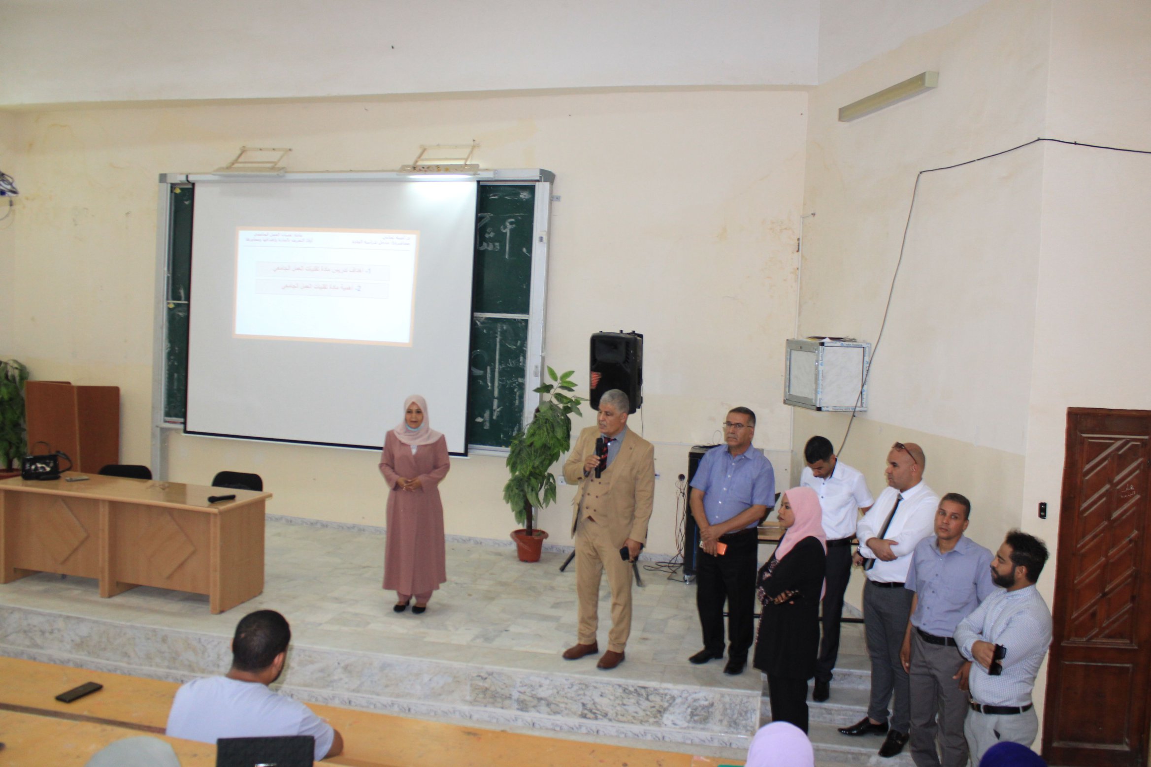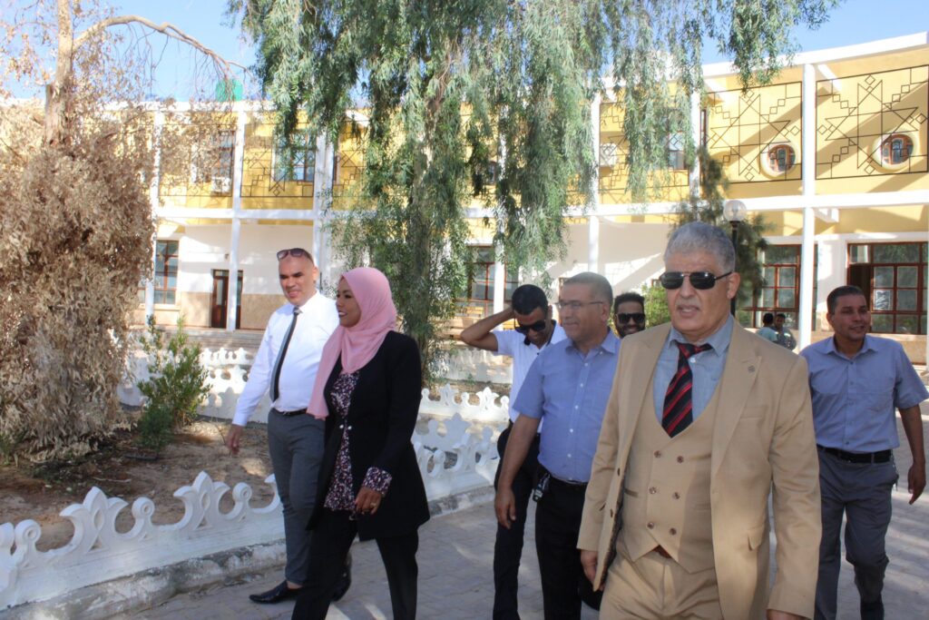 On Monday, September 25, 2023, the Rector of the University of El Oued, Professor Omar Ferahti, accompanied by Vice-Rector for External Relations, Professor gueddah El Habib, paid a visit to the Translation Department at the Faculty of Arts and Languages. He was welcomed by the Dean of the Faculty, Professor Dalal Ouchen, vice Dean for Studies, Dr. Nacer Dahdah, and the administrative and pedagogical staff of the Faculty. The University Rector inspected the progress of the classes and all the facilities available to the translation students. He gave a speech to the students, congratulating them on their affiliation to the translation specialization and stressing the importance of language and translation in particular in the scientific, research and professional life of the future graduates of this department, which was opened at the University of El Oued during this season 2023/2024. He offered them many useful pieces of advice for their university career and their study of the specialization, thanking the efforts of the Dean of the Faculty and all her staff for their continuous work to develop the research and scientific side and to follow the orientations of the Ministry of Higher Education and Scientific Research and to train professors and students in the English language, as the opening to languages is a goal to create a diverse culture that benefits the researcher in his scientific and academic field.